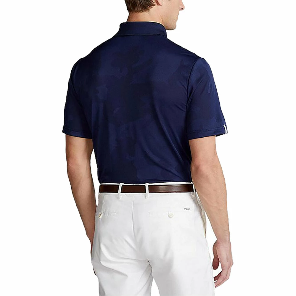 The RLX Mesh Camo Jacquard Golf Polo is crafted from lightweight, moisture-wicking fabric that will keep you comfortable and cool when the competition gets heated. It features a classic fit, three button placket, spread collar, tennis tail, mesh camo print, and RLX loop at the right sleeve. UPF 50 will let you soak up the sun, safely.