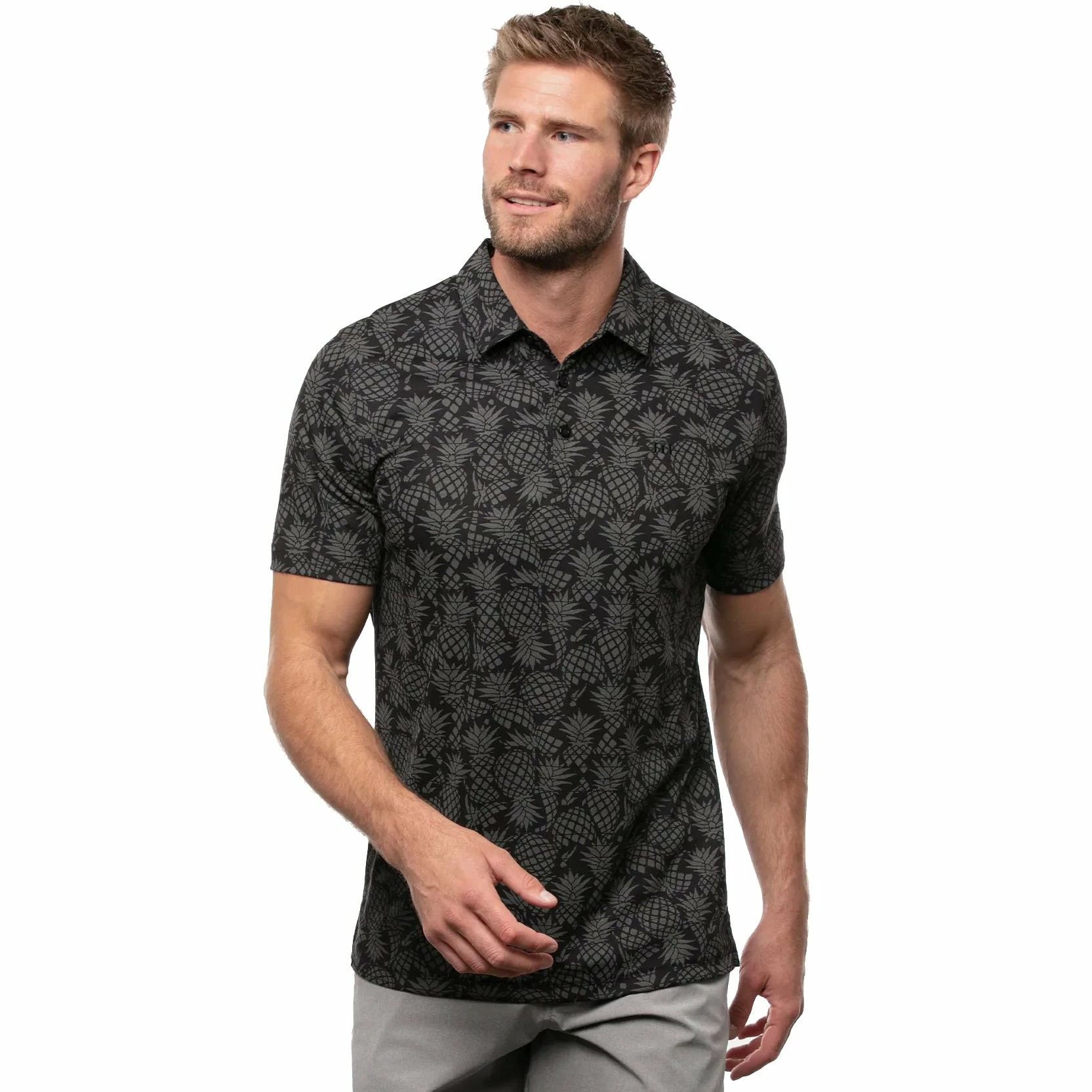 Take the tropical vibes wherever you go with the TravisMathew Off The Cape Golf Polo. This polo was designed with an all-over pineapple print for style and its built with a super soft and comfortable material that will move with you to provide comfort at all times. The Off The Cape is wrinkle resistant to keep you looking crisp and clean at all times.